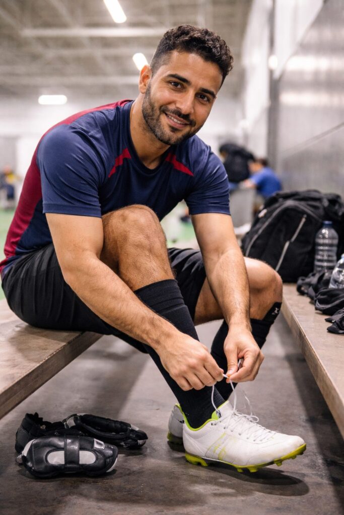 Karim joue au soccer une fois par semaine sans vraiment s’échauffer ni se préparer. Il accumule des raideurs aux hanches et au bas du dos, surtout l’hiver, mais continue tant que « ça passe ».